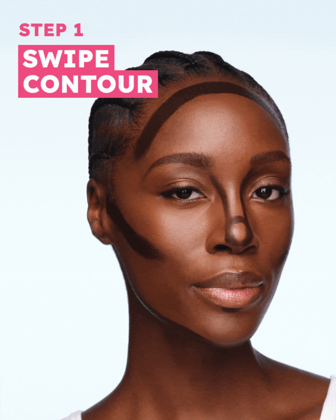 Think of contouring as a way to add shadows to your face to create an illusion of a more sculpted and defined facial structure. Everyone’s face shape is different, so you’ll want to play with what areas you’d like to enhance or where your natural shadows lie. The following steps are just a general baseline but continue to explore what feels best for you!