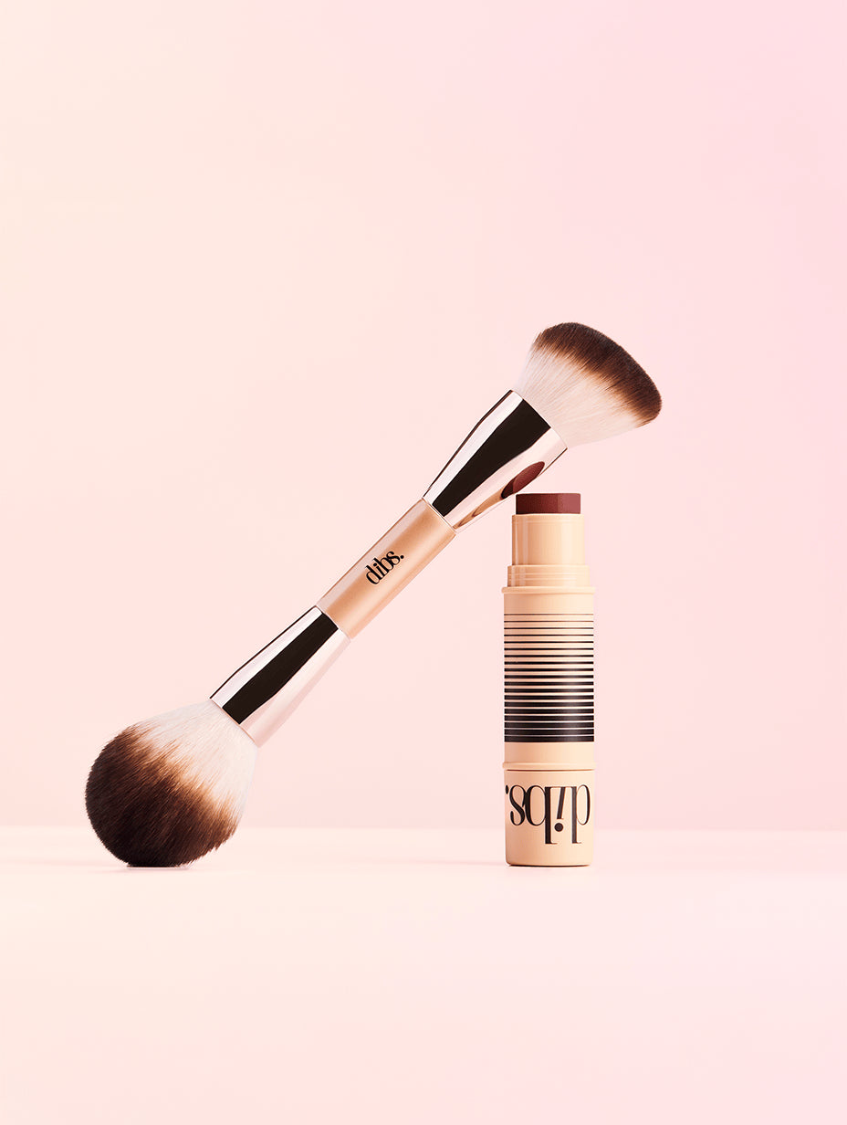 Swipe the bronzer shade along key areas you want to define, such as your forehead, nose, cheekbones and jawline. Layer a pop of color on top to add color and dimension. We like to go straight from the stick and then blend with our Duo Brush Face, but you can also use your fingertips to apply and blend. Start with your base primer and/or foundation, then layer on the Duo and finish with a powder (such as our baked Duet toppers!)