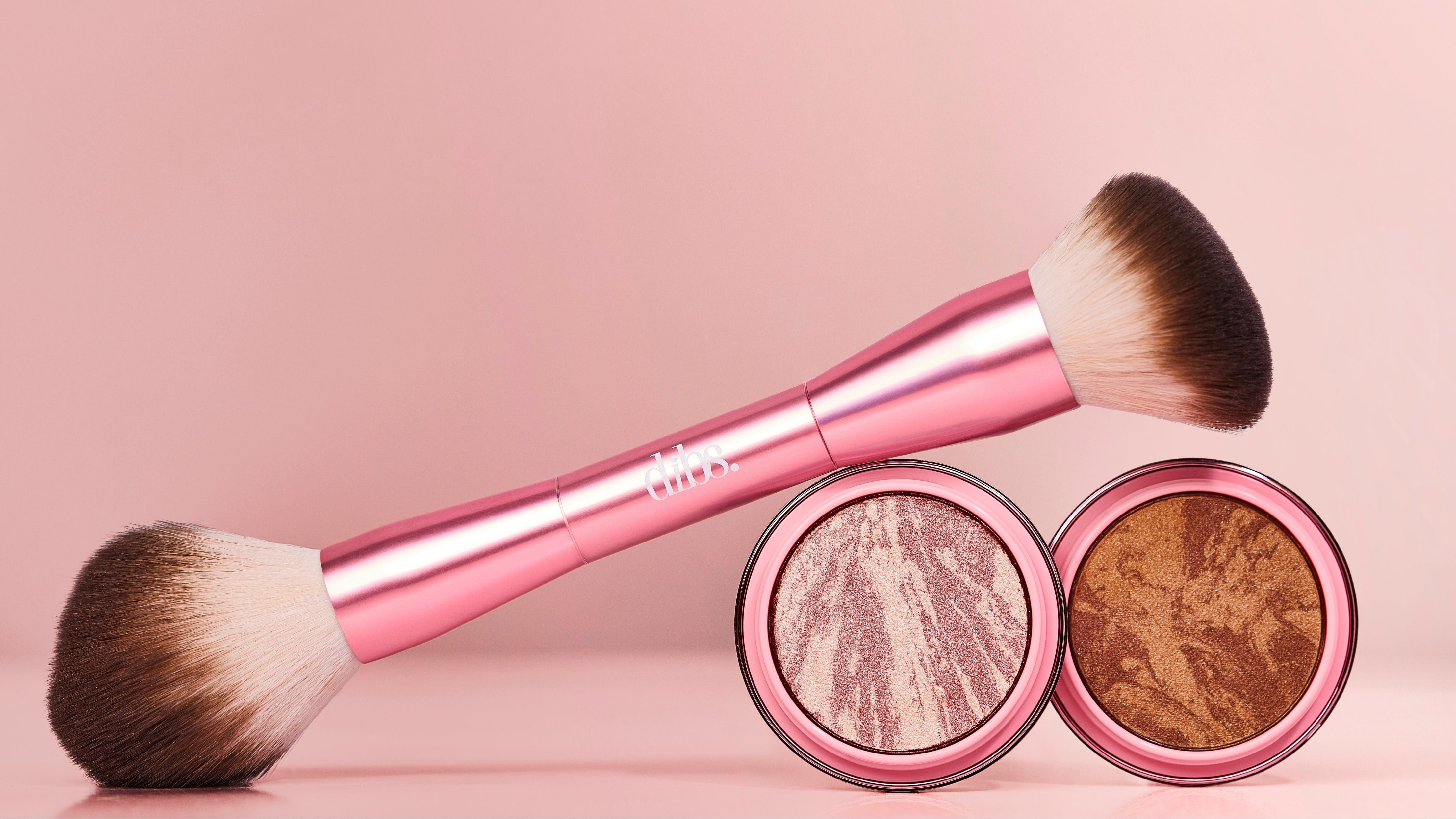 First, apply and blend your Desert Island Duo or GlowTour Duo to your cheeks and forehead. Next, tap into our GlowBounce highlighter and dust on the high points of your face and eyes.