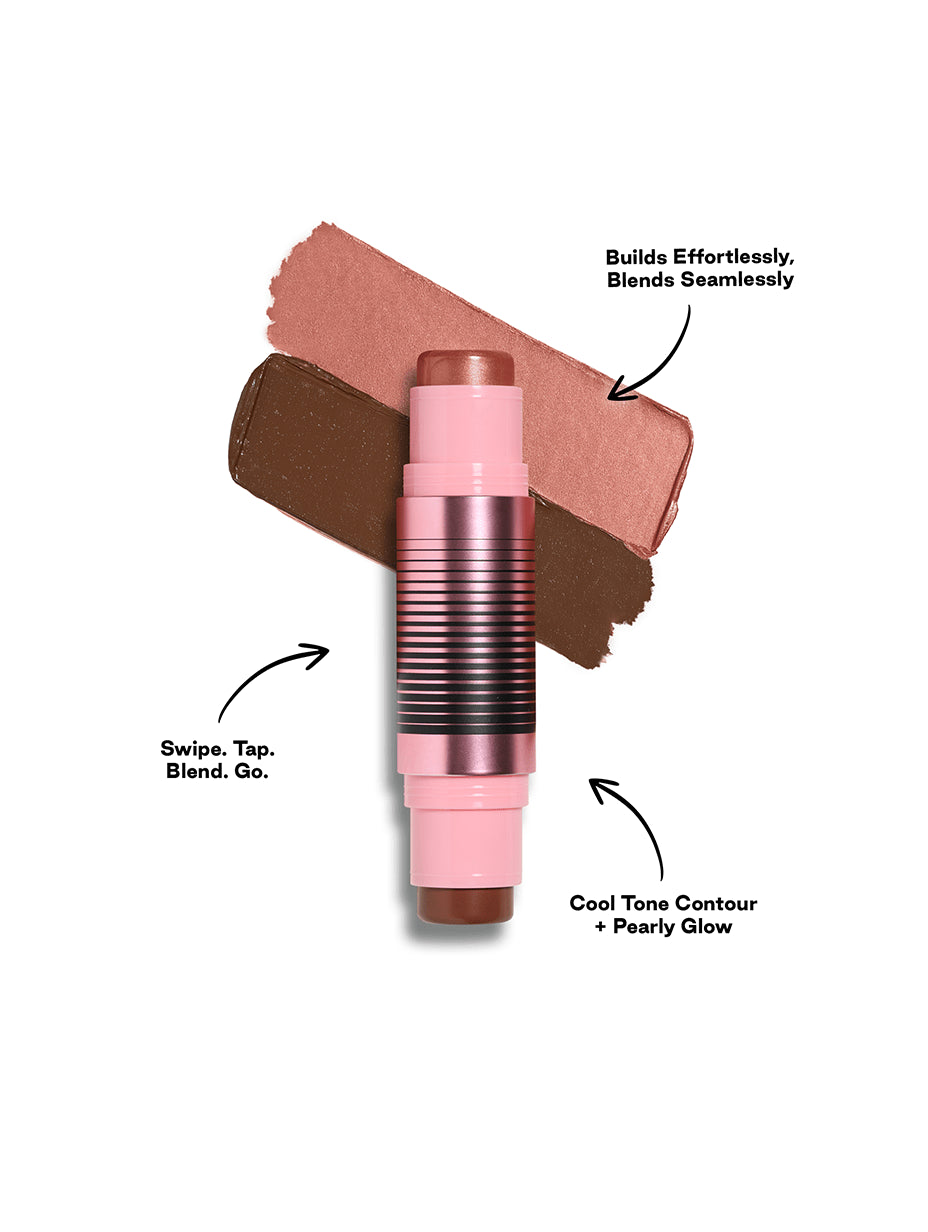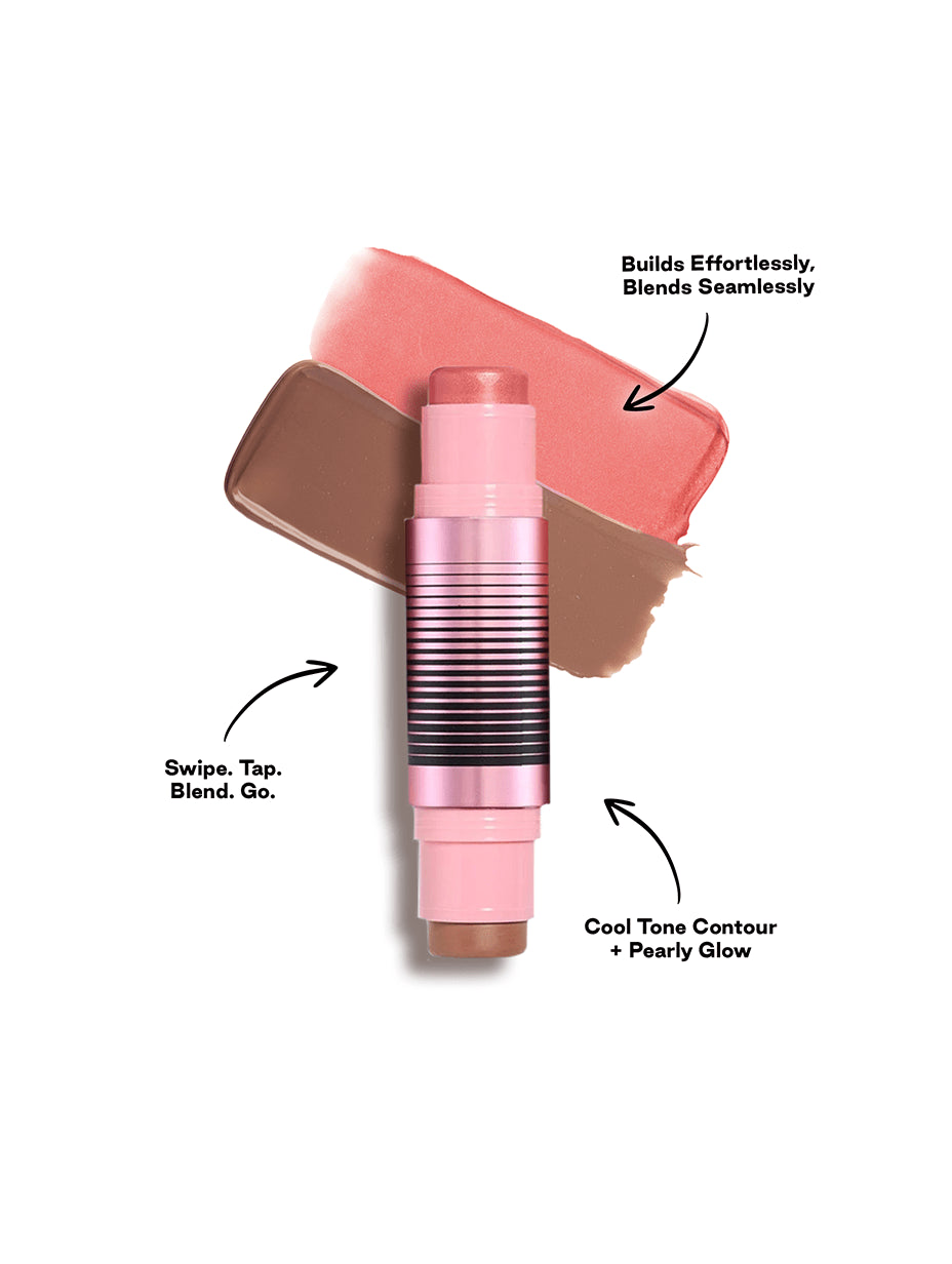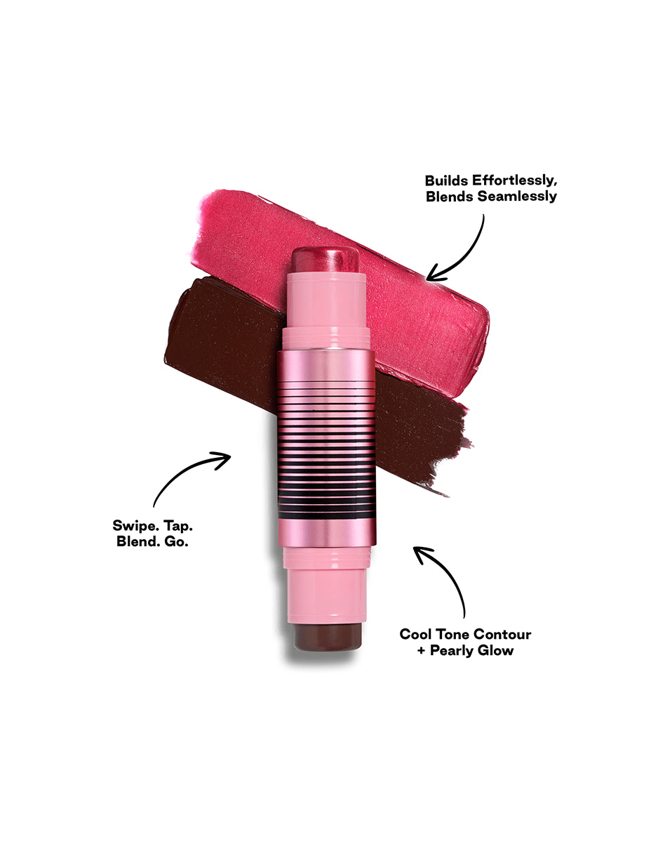 This easy Duo features a shimmering blush-highlighter and an ultra-creamy contour for the ultimate full-face glow-up. Achieve effortlessly blended definition and a pigmented, pearly glow, all in the flick of a wrist. Designed for versatility, layering and endless play, the beauty is in the blend.