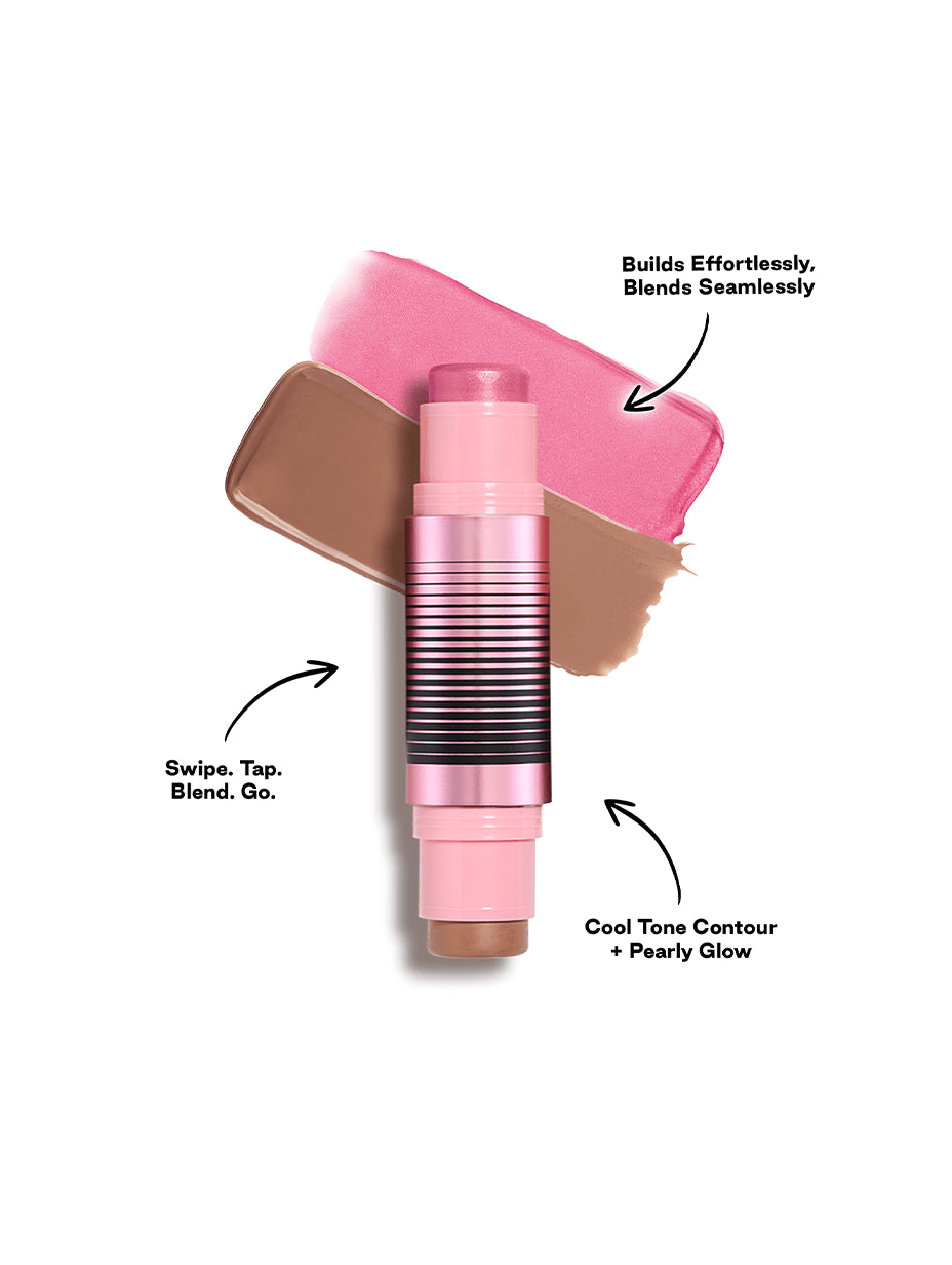 This easy Duo features a shimmering blush-highlighter and an ultra-creamy contour for the ultimate full-face glow-up. Achieve effortlessly blended definition and a pigmented, pearly glow, all in the flick of a wrist. Designed for versatility, layering and endless play, the beauty is in the blend.